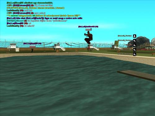 Janika épp ugrik a medencébe